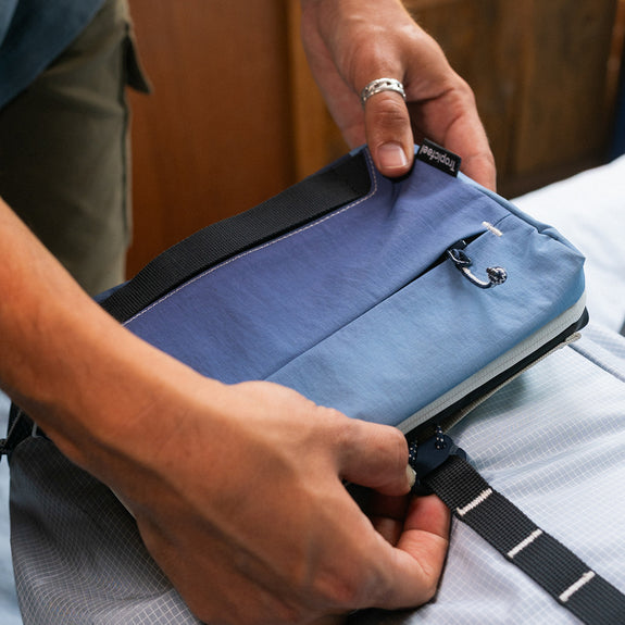 Crafted with 100% recycled Taslan RipStop and other high-performance water resistant materials and sealed zippers, it’s as tough as you are.